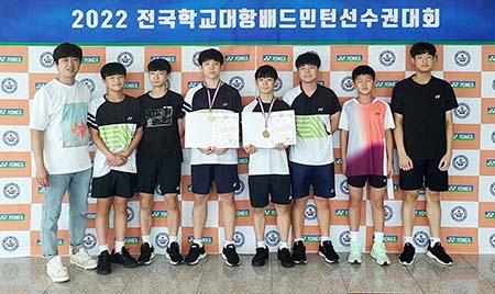 화순중학교 배드민턴부는 지난 8월 19일 화순하니움스포츠센터에서 열린 ‘2022 전국학교대항 배드민턴 선수권대회’에서 이지호-정다환 조가 결승에서 의정부시 G스포츠클럽을 2-1(21-17, 18-21, 21-16)로 제압하고 금메달을 목에 걸었다.
