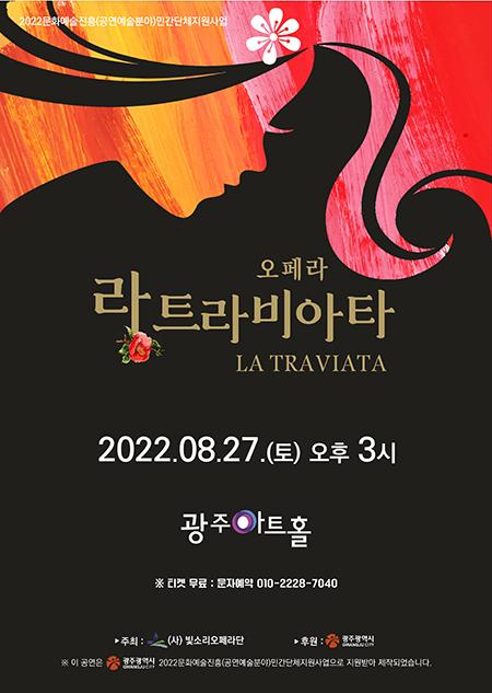 오페라 ‘라 트라비아타’는 2022문화예술진흥(공연예술분야)민간단체지원사업의 일환으로 광주광역시의 후원을 받았다. 전국에서 활발하게 활동하고 있는 중견성악가들의 목소리를 통해 곡들을 들을 수 있다.