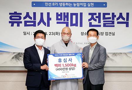 광양 휴심사는 지역사회 이웃사랑 실천의 일환으로 백미 1500kg(400만 원 상당)을 지난 23일 (재)광양시사랑나눔복지재단에 전달했다.