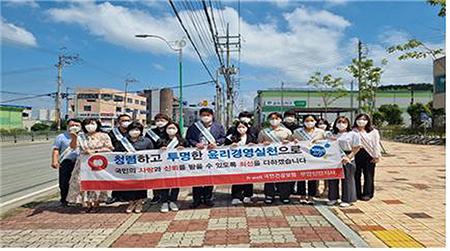 국민건강보험공단 무안신안지사는 2015년부터 2021년까지 ‘정부청렴도 7년 연속 최상위기관’ 달성을 기념하고, 공단의 윤리경영 실천의지를 대내외에 선포하기 위해 무안신안지사 청렴실천단원들과 8월24일 반부패·청렴문화 확산과 부패신고 활성화 및 공익신고 보호제도 운영 등 투명하고 공정한 업무처리와 윤리경영 실천의지를 대내외에 알리고자 청렴실천 캠페인을 실시했다.