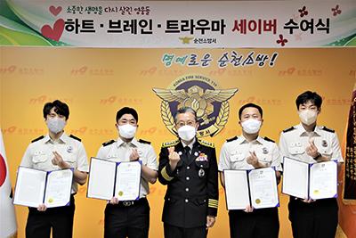 박상진 순천소방서장은 \"하트·브레인 세이버를 수상한 여러분께 축하와 감사의 마음을 전한다. 여러분이 살린 환자는 우리가 지켜야할 시민이고, 누군가에는 사랑하는 가족임을 잊지마시고 앞으로도 위급환자에게 버팀목이 되어주길 바란다“고 격려했다.
