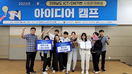 청암대학교 컴퓨터정보융합과 교수 및 학생들이 ‘2022년 전라남도 ICT/SW기반 사회문제해결 아이디어 캠프’에 참여해 최우수상 및 우수상을 수상했다.