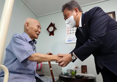 박 장관은 이날 강제징용 피해자인 이춘식 할아버지와 양금덕 할머니의 자택을 차례로 예방했다.