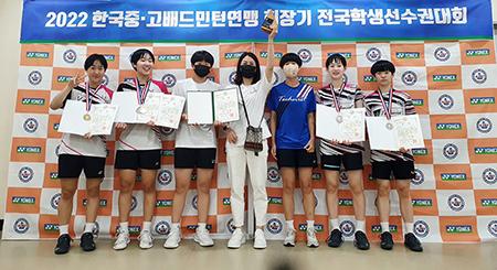화순고는 8월 27일부터 9월5일까지 10일간 경남 밀양에서 개최된 \'2022 한국 중·고배드민턴연맹 회장기 전국학생선수권대회\'에서 여자고등부 복식(1학년)에서 우승과 준우승을 개인단식 준우승, 단체전 3위의 성적을 거뒀다.