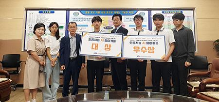 대상을 수상한 김예찬, 이하람 군은 1박2일 간 자체제작한 AI 쓰레기 분리수거기를 아두이노와 C언어 프로그래밍 코딩해 제작 성공했다.