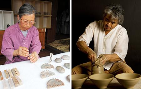 옥공예 김육남(왼쪽)·도자공예 정기봉. /해남군 제공