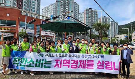 광양시 중마동 미가로 골프장 사거리에서 지난 14일 동광양상공인회 주관으로 중마동 주민자치위원회와 동사무소 직원들이 ‘지역경제 살리기 홍보 캠페인’을 펼쳤다.