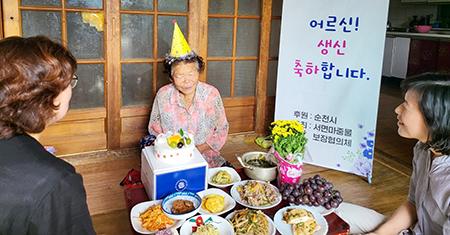 순천시 서면마중물보장협의체는 관내 학동마을 등 3개 마을회관에서 홀로 사는 어르신의 생일을 축하하는 ‘생일상 차려 드리기’ 행사로 마음을 나누는 시간을 가졌다.