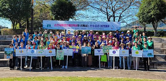 순천시여성단체협의회는 지난 27일 장대공원과 아랫장 일원에서 전 지구적 기후 위기의 대안인 2050 탄소중립 실천 문화를 확산시키기 위해 탄소중립 실천대회를 열었다고 밝혔다.