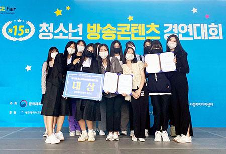 광주 북구 사립특성화고 전남여상 학생들이 지난 24일 김대중컨벤션센터 야외무대에서 열린 제15회 청소년 방송콘텐츠 경연대회에 출전해 대상(문화체육관광부 장관상)을 받으며 우수한 기량을 뽐냈다.