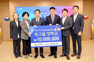 광주시는 광주은행이 빛고을장학금 1000만 원을 기탁했다고 4일 밝혔다.