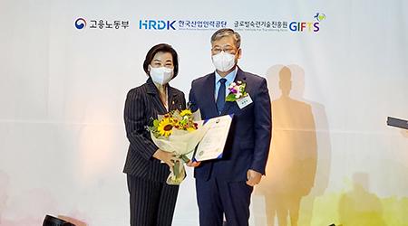 이정례 지회장은 최근 고용노동부와 한국산업인력공단이 공동으로 주최한 ‘2022년도 우수숙련기술자 증서 수여식 및 워크숍’에서 우수숙련기술자로 선정돼 고용노동부 장관 인증서를 받았다.