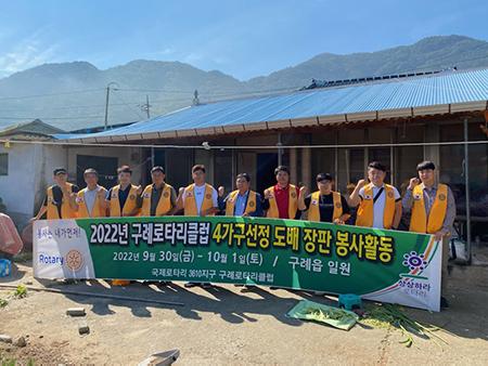 국제로타리 3610지구 구례클럽은 매년 지역을 위한 다양한 나눔과 봉사활동을 이어오고 있는 단체로 지역사회에서 솔선수범해 봉사활동을 펼치고 있다. 또한 주거환경 개선이 필요한 독거노인 및 저소득 어려운 4가구를 선정해 도배·장판을 교체해 복지사각지대에 있는 가구의 주거환경 개선을 해소하는데 기여했다.