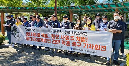 광주·전남 노동단체가 영암 대불산단 공장 내 작업자 추락 사망 사고에 대해 엄정한 처벌을 촉구했다.