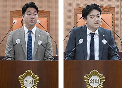 광주 북구의회 구정질의하는 (사진 왼쪽부터) 신정훈 의원, 정재성 의원. (사진=광주 북구의회 제공) 2022.10.21.