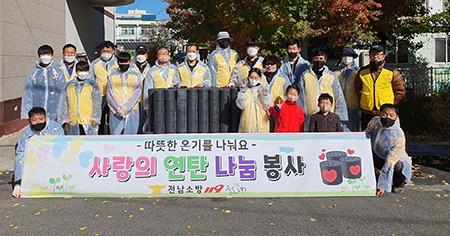 전남소방 직장동호회 119섬나회는 지난 5일 순천시 취약계층에 대해 연탄 나눔 봉사활동을 펼쳤다.