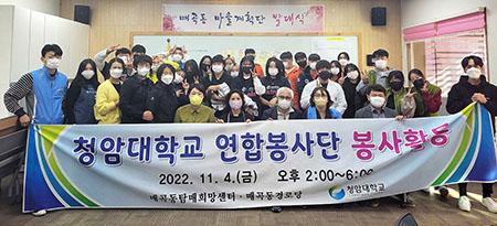 정용태 청암대 연합봉사단장은 “앞으로도 지역사회 이웃사랑 실천을 위한 행사를 꾸준히 하겠다”고 전했다.