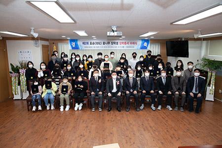 학교법인 청송학원 김용만 이사장이 10일 정원(正元)장학복지재단을 통해 어려운 환경 속에서도 꿈을 이루어가고 있는 초등학생들을 격려하고자 제2회 효송(效松) 꿈나무 장학금을 수여했다.