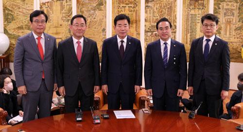 김 의장은 이날 오전 주호영 국민의힘 원내대표와 박홍근 민주당 원내대표를 의장실로 불러 원내 현안을 논의했다.