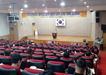 광주동·서부교육지원청이 지난 11일 광주창의융합교육원에서 서부교육지원청 주관으로 2023학년도 중학교 입학 배정 업무의 효율적 추진을 위한 설명회를 개최했다.