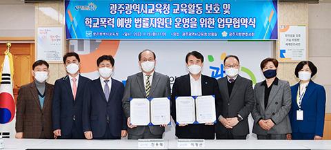 광주시교육청이 15일 광주지방변호사회와 교육활동 보호 및 학교폭력 예방 법률지원단 운영을 위한 업무협약을 체결했다.
