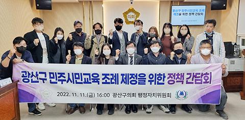 광산구의회 행정자치위원회(위원장 정재봉)는 최근 구의회 2층 회의실에서 ‘민주시민교육 조례’ 제정을 위한 정책 간담회를 열었다.