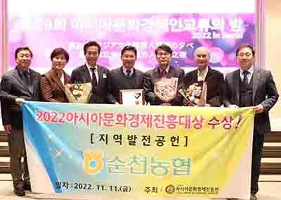순천농협 강성채 조합장이 (사)아시아문화경제진흥원이 주최한 ‘2022아시아문화경제진흥대상’ 시상식에서 지역발전부문 대상을 수상했다.