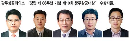 제10회 광주상공대상에는 ▲경영우수부문 마찬호 남양건설㈜ 대표이사 ▲고용우수부문 김명선 금호타이어㈜ 생산기술본부장(전무) ▲기술혁신부문 노정규 현대로오텍㈜ 대표이사 ▲지역공헌부문 정혁준 삼성전자㈜ 광주지원센터장(상무), ▲노사상생부문 조순만 매일유업㈜ 광주공장장(상무)이 선정됐다.