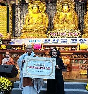 관음사는 지난 2020년부터 3년째 지역 사회와 지구 생명을 살리기 위한 삼천불 공양대제를 올리면서 공양금 일부를 충장동 지사협에 전달하는 이웃사랑을 실천해 오고 있다.