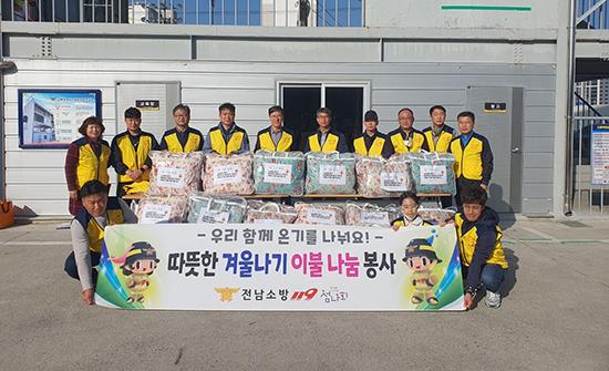 순천시는 최근 전남소방119 섬나회가 어려운 이웃에게 이불 30채를 전달했다고 28일 밝혔다. 이날 전달된 이불은 섬나회 회원과 가족들이 함께 가정을 방문해 전달했으며 외로운 이들에게 따뜻한 온기를 전했다.