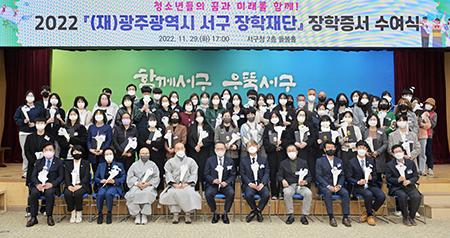광주서구장학재단은 지난 29일 서구청 들볼홀에서 2022년 장학증서 수여식을 열었다고 30일 밝혔다.