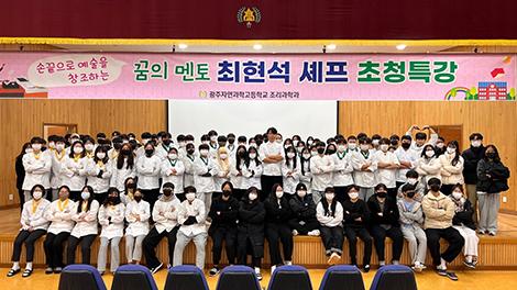 광주자연과학고등학교가 지난 2일 조리과학과 학생들을 대상으로 최현석 스타셰프 초청 특강을 실시했다.