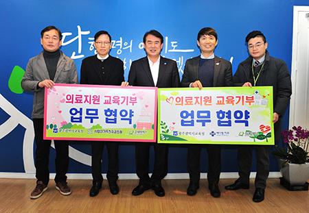 광주시교육청이 5일 메디필치과의원 및 사랑이가득한치과의원, 굿네이버스 광주전남지역본부와 ‘의료지원 및 교육기부 활성화’를 위한 2건의 업무협약을 각각 체결했다.