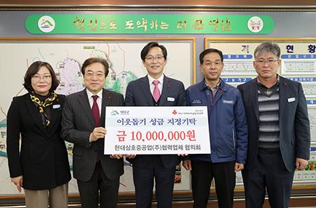 현대삼호중공업(주)협력업체 협의회는 매년 연말 영암군의 불우 이웃을 위해 성금을 기부하고 있다.