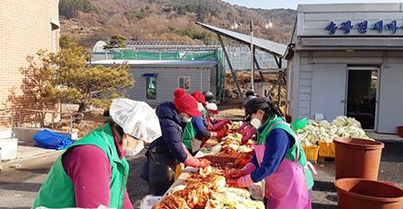 새마을부녀회는 매년 겨울철 김장김치를 담아 어려운 이웃에게 김치 나눔을 통하여 따뜻한 나눔 공동체 문화 확산에 기여하고 있으며, 소외계층 밑반찬 나눔 등 어려운 이웃들과 함께 상생할 수 있는 이웃사랑 실천에도 앞장서고 있다.
