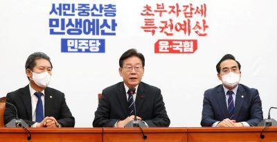 이재명 더불어민주당 대표가 내년도 예산안 및 예산 부수 법안 처리와 관련해 \"대승적 차원에서 국회의장 뜻을 존중하고 중재안을 받아들이기로 했다\"고 밝혔다.