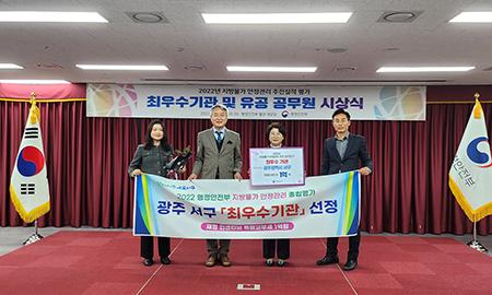 광주 서구(구청장 김이강)가 행정안전부 주관 ‘2022년 전국 지방물가 안정관리 실적평가’에서 광주 5개 자치구 중 유일하게 최우수 지자체로 선정되어 인센티브로 특별교부세 1억 원 받게됐다.