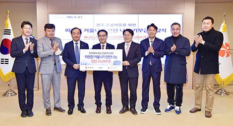 광주광역시(시장 강기정)는 지난 16일 오전 시청에서 하나되는 건설인의 모임(하건회), 광주사회복지공동모금회와 취약계층 연탄 나눔을 위한 성금 전달식을 개최했다.