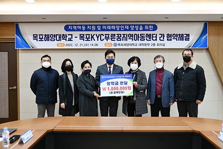 목포해양대학교가 목포 KYC푸른꿈지역아동센터와 지난 21일 오후 대학본부 2층 회의실에서 지역아동 지원 및 미래해양인재 양성을 위한 협약을 체결했다.