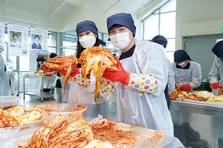 이번 기부는 조선대학교 총장과 교수, 학생으로 구성된 사회봉사단 70명이 광주김치타운에서 직접 김치를 버무려 포장해 후원했다.