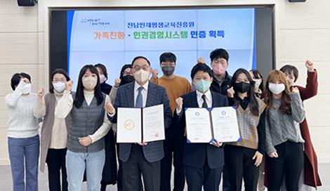 전남인재평생교육진흥원은 최근 인권경영시스템 및 가족친화 인증을 받은 것을 계기로, 앞으로 더욱 누구나 존중받고 행복한 직장을 만들기 위해 힘쓸 것을 다짐했다.