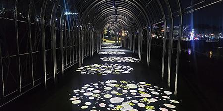 디지털 장미터널은 특수 필름에 원하는 그림을 새겨 비추면 확대되어 나타나는 고보 조명(gobo light)을 사용해 설치했다.