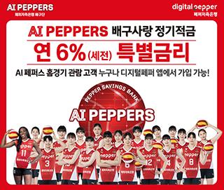 페퍼저축은행이 AI페퍼스 배구단 홈 경기를 직접 관람한 고객에게 연 6.0%(세전) 금리를 제공하는 \'AI페퍼스 배구사랑 정기적금\'을 출시한다고 11일 밝혔다.