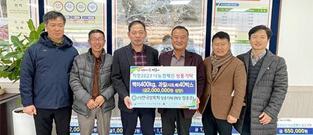 (사)한국상록회 장흥지회는 16일 장흥읍행정복지센터를 방문하여 설맞이 저소득가정을 위해 백미 400kg, 과일 40박스(200만원 상당)를 기탁했다.