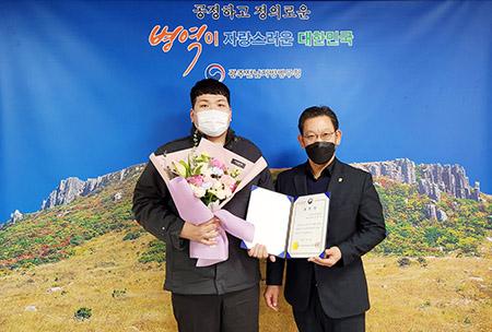 광주전남병무청은 신속한 응급 처치로 A씨의 생명을 구한 송씨에게 표창장을 줬다. 송씨는 지난 28일 사회 복무를 마쳤다.