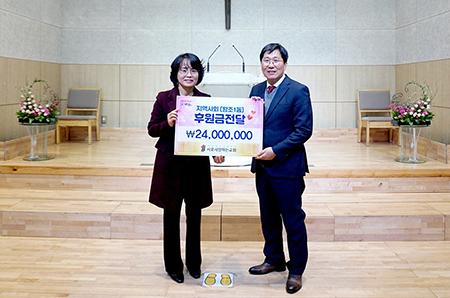 순천시 왕조1동 소재 서로사랑하는교회가 지난 29일 어려운 이웃을 위한 후원금으로 2400만원을 왕조1동행정복지센터에 전달했다.