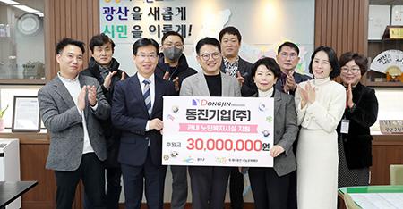 전달식에 참석한 박병규 광산구청장은 “기업의 사회공헌활동을 실천하며, 지역사회에 선한 영향을 주는 나눔에 앞장서 준 동진기업에 감사드린다”며 “광산구도 취약계층 어르신들의 복지증진을 위해 더욱 노력하겠다”고 말했다.