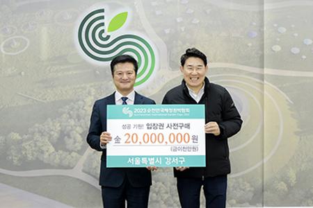 순천시(시장 노관규)는 지난 3일 서울특별시 강서구청장(구청장 김태우)이 순천을 방문해 순천만국가정원 정원실에서 2천만원 상당의 정원박람회 입장권 구매약정을 체결했다.