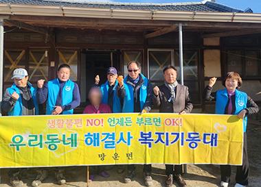 무안군 망운면 우리동네 복지기동대지난 지난 6일 열악한 주거환경에서 생활하는 취약계층을 대상으로 맞춤형 주거환경 봉사활동을 펼쳤다.