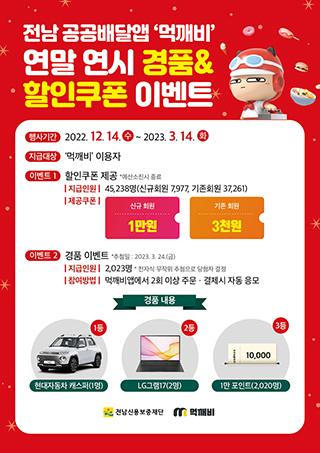 전남도가 공공배달앱 \'먹깨비\' 이용 활성화를 위해 오는 3월 14일까지 이용자를 대상으로 경품 이벤트를 진행하고 있다.